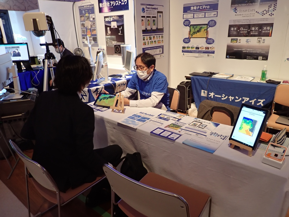 11月29日から30日の2日間、宮崎市で開催された「みやざきDX技術体験展示会」に出展しました。今年が初めて開催でしたが、運営の予想を超えて2日間で500名ほどの来場者があったそうです。直接の水産関係者の来場は少なかったのですが、水産にも力を入れている宮崎県だけあって、オーシャンアイズの漁場ナビにも興味を持って説明を聞いてくださったり、デモを体験したりしてくださった方も大勢いらっしゃいました。また、さまざまなDX課題に取り組むほかの企業とも情報交換をすることができ、非常に有意義な2日間となりました。