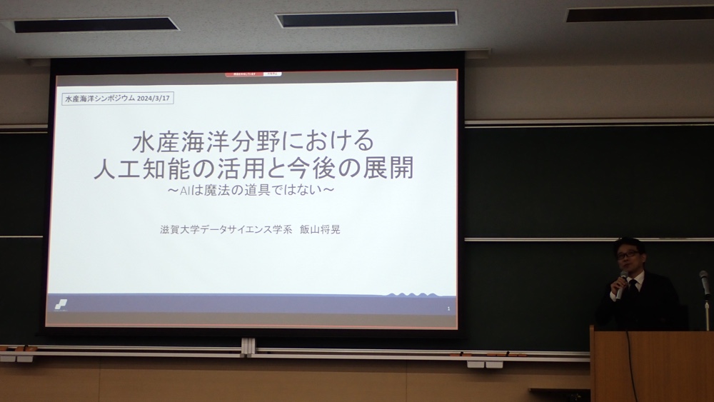 3月17日に開催された水産海洋シンポジウムにて、代表取締役の田中と滋賀大学の飯山教授(兼弊社取締役)が講演しました。