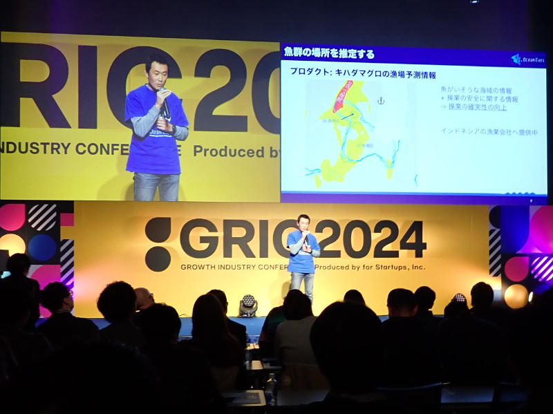 11月14日に渋谷ヒカリエホールで開催された国内最高峰のグローバルスタートアップカンファレンス「GRIC2024」ピッチコンテストで、オーシャンアイズが株式会社インテック賞、GIP株式会社賞を受賞しました。さまざまなテーマの先進技術をもつスタートアップが並ぶなか、2社からスポンサー賞をいただけたことは、弊社技術への期待もさることながら、海洋分野全体への注目が高まっていることを感じました。会場ブースにも国内外から投資家や新しいソリューションを求める大勢の人が訪れ、海洋分野へのデータ利活用による貢献についてより深く興味を持っていただくことができました。