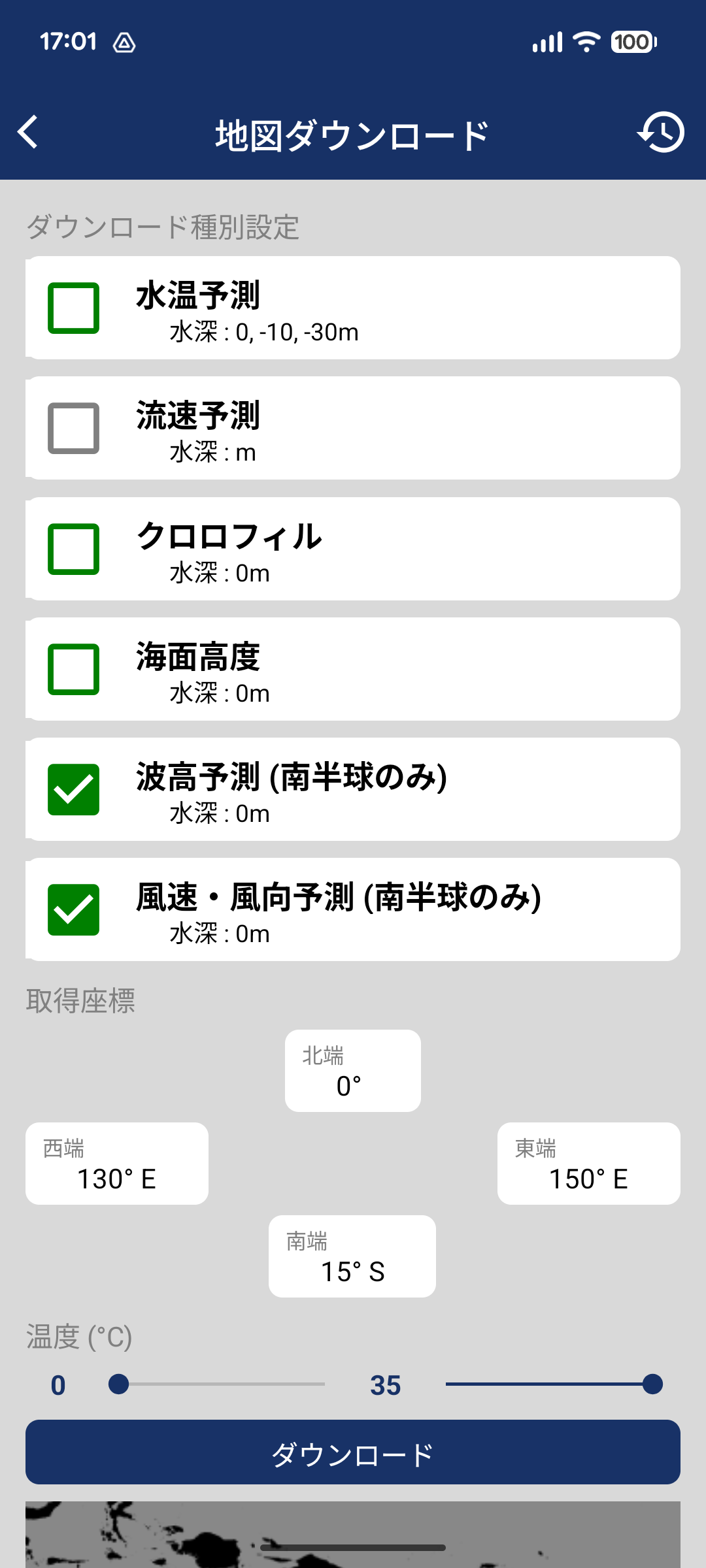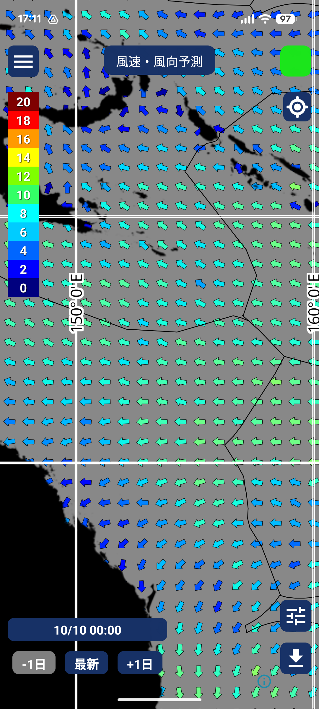 *風速・ 風向、波高データは南半球のみ表示可能です。