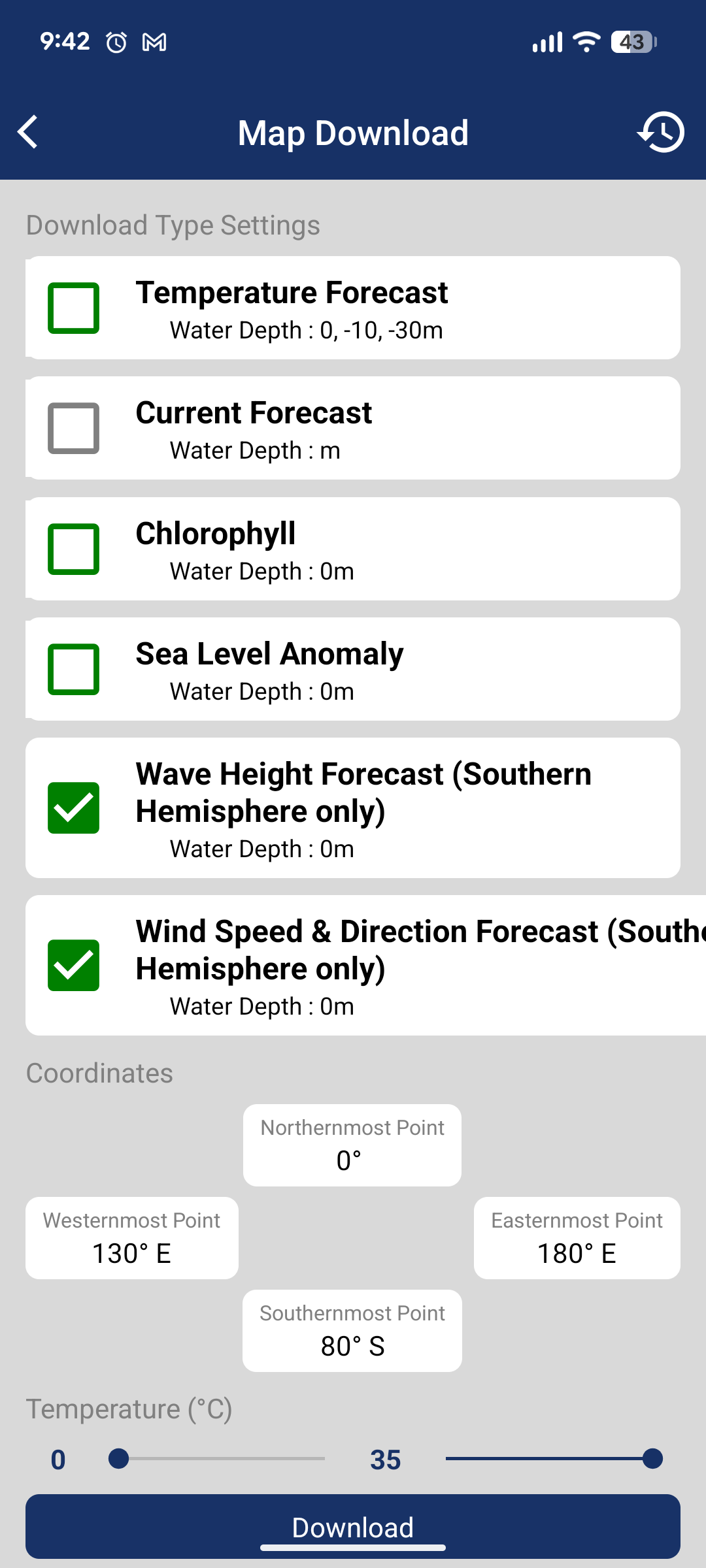 *Wind speed and direction data, Wave height data can be displayed only in the Southern Hemisphere.