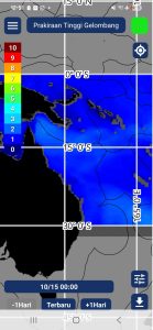 *Data kecepatan angin, arah angin, dan ketinggian gelombang hanya tersedia untuk Laut Indonesia.